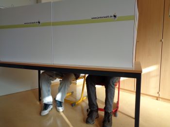 Um den Schülern und Schülerinnen zu ermöglichen, den Wahlgang auch praktisch auszuprobieren und darüber hinaus ihre aktuelle politische Meinung einmal abgebildet zu sehen fand auch diesmal wieder die „Juniorwahl“ unter organisatorischer Leitung von Herrn Montag (GK-Lehrer) und Unterstützung der Schulsozialarbeit statt. Wie bei einer echten Wahl erhielt die Schülerschaft der Klassenstufen 8-10 entsprechend vorab eine Wahlbenachrichtigung und jeder/jede konnte dann FREIWILLIG seine/ihre Stimme geheim per Wahlzettel in der Wahlkabine abgeben.