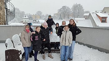 Kurze Mittagspause und dann wieder Proben über Proben. Mal das Schauspiel, meist aber Lieder für die weihnachtlichen Auftritte. Lediglich am Donnerstag verlängerten wir unsere Mittagspause durch einen Gang ins Kornmarktcenter. Und auch dort ging es nicht ohne Gesang. In der Reichenstraße wurde der Weihnachtsmarkt aufgebaut und ein Straßenmusiker bekam unsere gesangliche Unterstützung. Singend zogen wir dann gleich weiter zurück zur Jugendherberge. Was wohl die Passanten gedacht haben? Nicht wenige blieben kurz stehen und staunten.